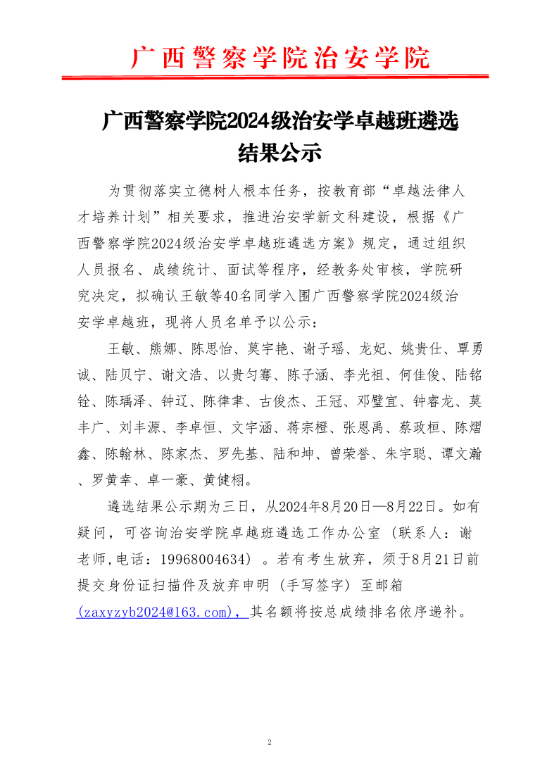 TapTap点点2024级治安学卓越班遴选结果公示