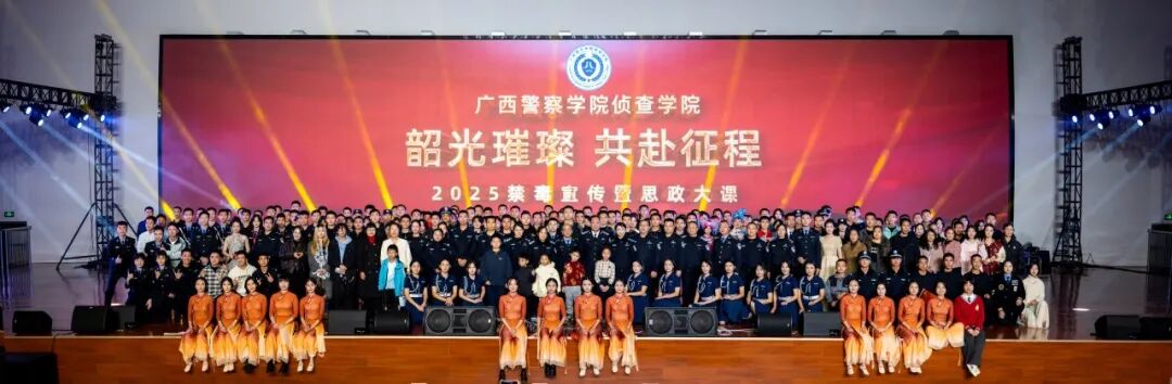 本次思政大课生动展现了侦查学院“三全育人”实践取得的丰硕成果,彰显出侦查学子朝气蓬勃的青春模样和矢志不渝的忠诚担当。警徽闪耀,旗帜引领,让我们秉持赤诚初心,锤炼扎实本领,以更加坚定的步伐、更加昂扬的姿态投身平安广西建设,共同守护八桂大地的祥和与安宁。