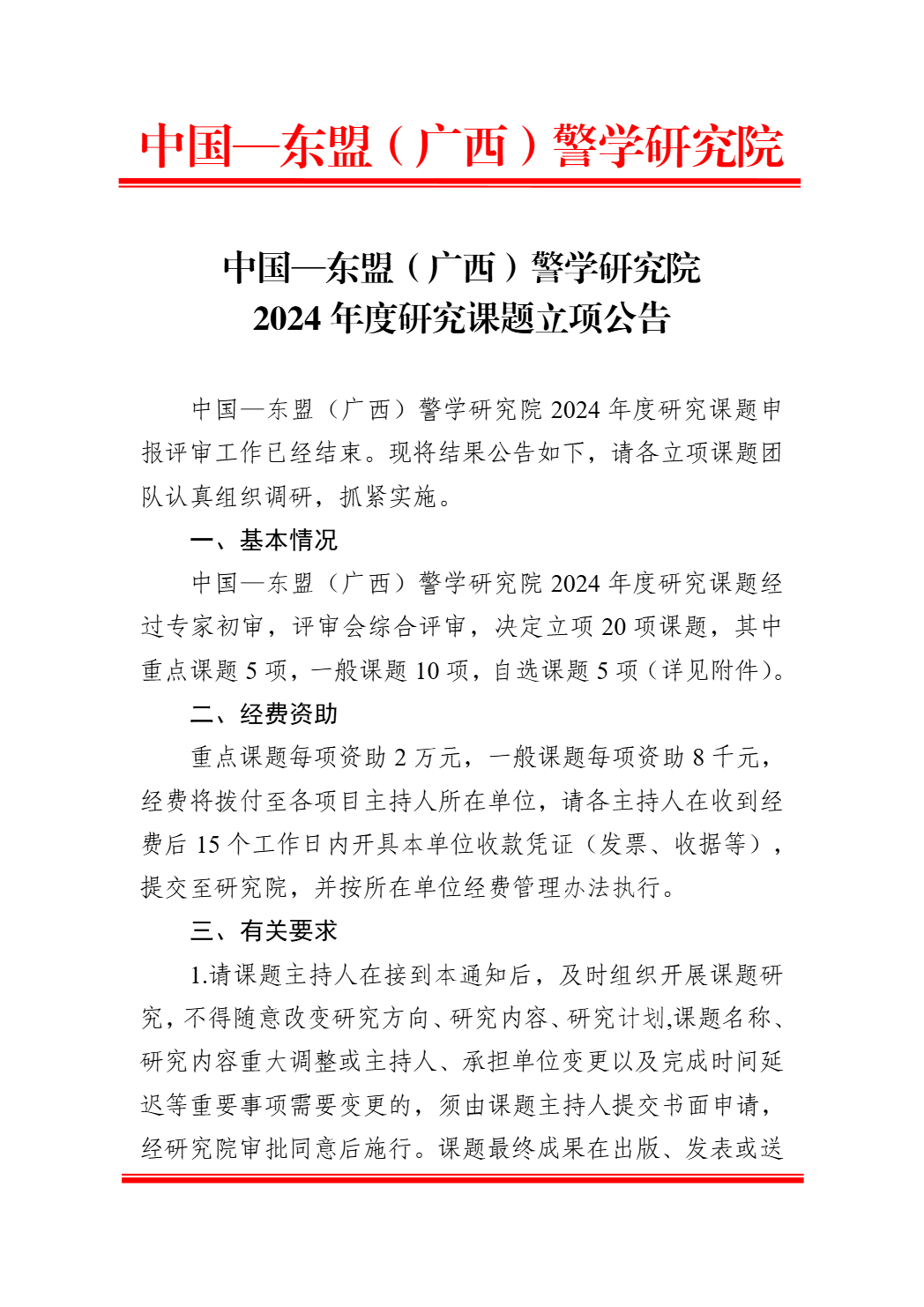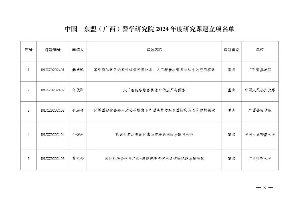 中国-东盟(广西)警学研究院2024年度研究课题立项公告