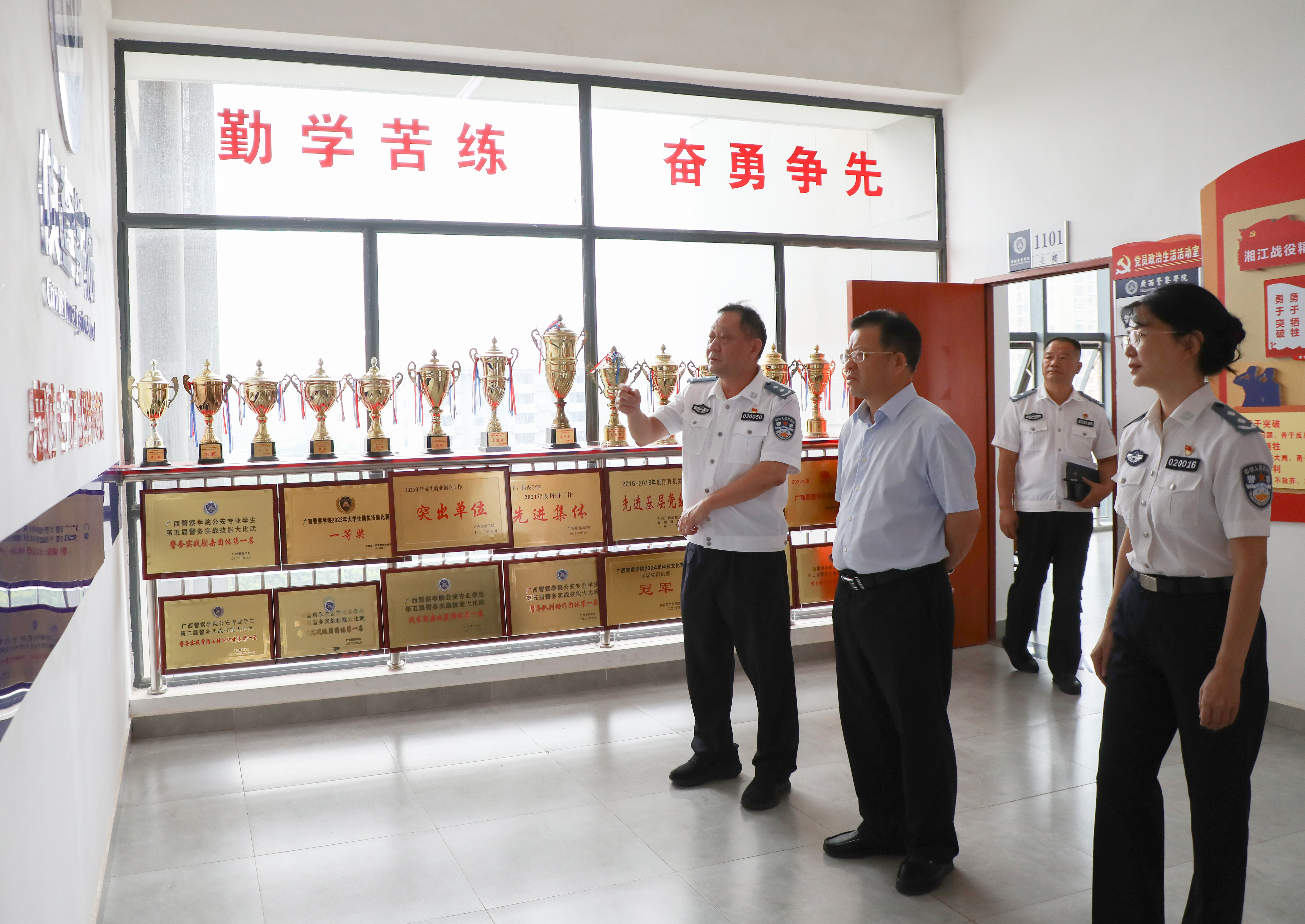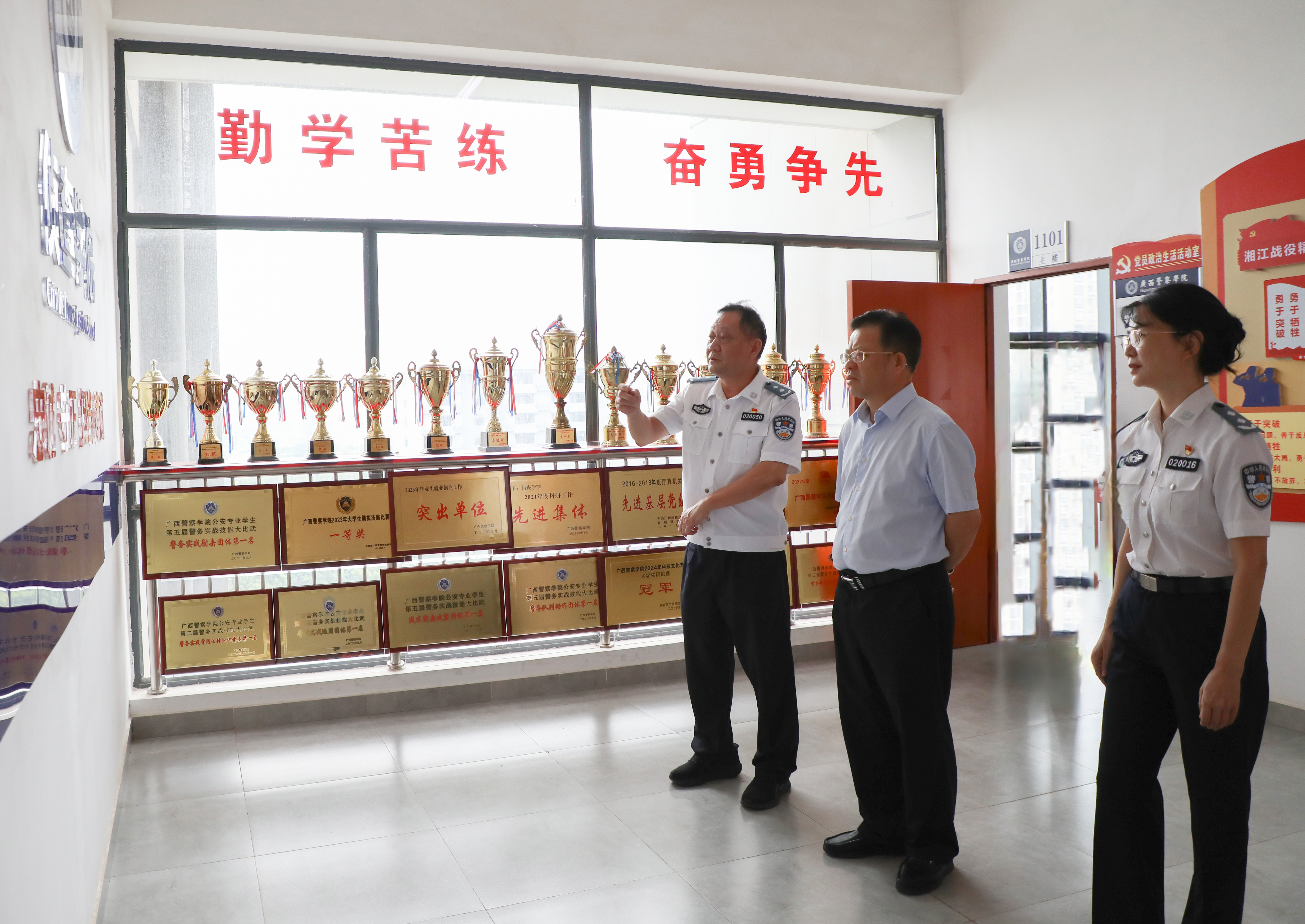 学院实施“铸魂·赋能·树人”师资培育计划,构建“政治素养、专业能力、师德师风”三位一体的教师发展体系。依托广西丰富的红色资源和警营文化,创新开展“行走的党课”“英模面对面”等特色活动,将忠诚警魂培育融入教师成长全过程。近年来涌现出全国公安教育优秀教师张晓春等一批先进典型,形成“党员带头、名师引领、团队攻坚”的良好生态。