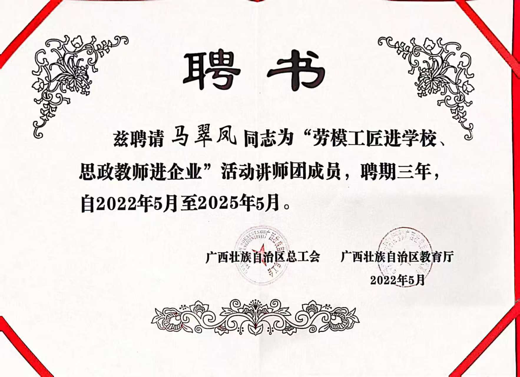 马翠凤副教授受聘自治区“劳模工匠进学校 思政教师进企业”讲师团成员