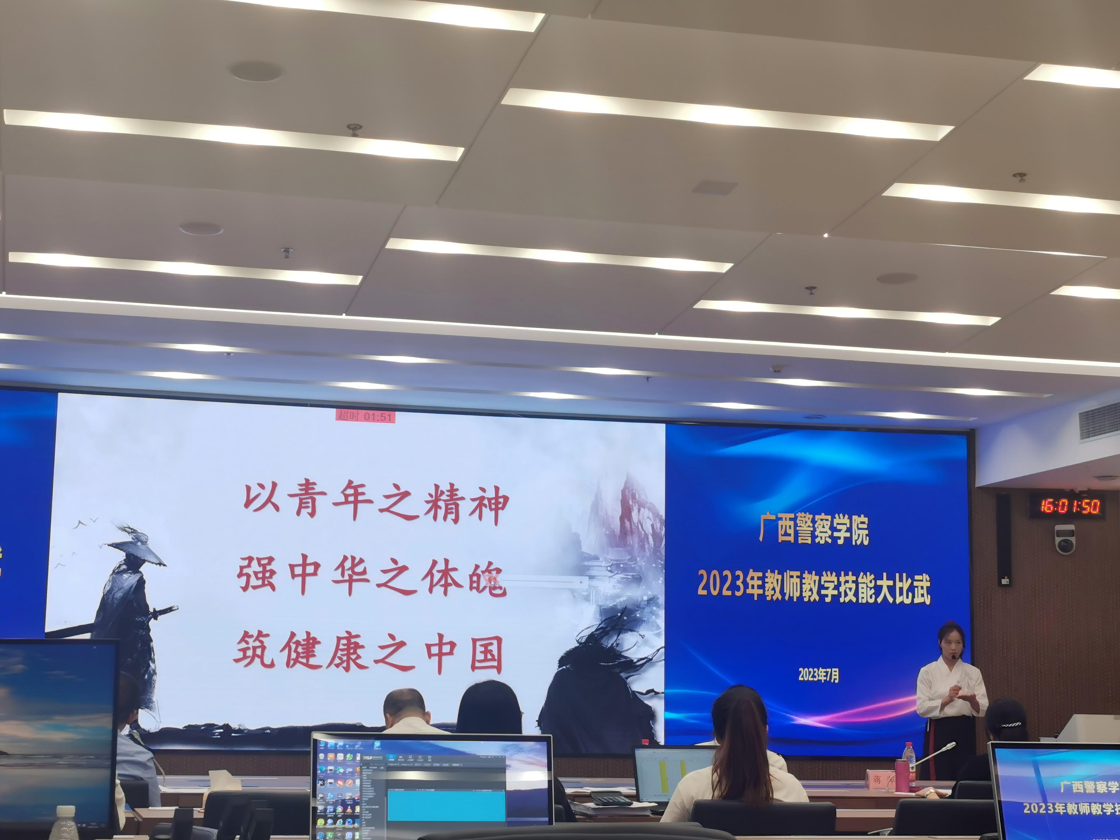 教师积极参与社会服务与高水平赛事,卢川、王莉、杨佩吉等多名教师担任全国、全区赛事技术官员;何鑫、乃盛业、韦宝宇、王思严等多名老师代表公安部、广西公安厅、厅机关参加全国、全区相关赛事。卢川、苏献军等多名教师担任广西体育高考考官。学校代表队与多所院校开展常态化交流,传递警院体育精神与良好形象。