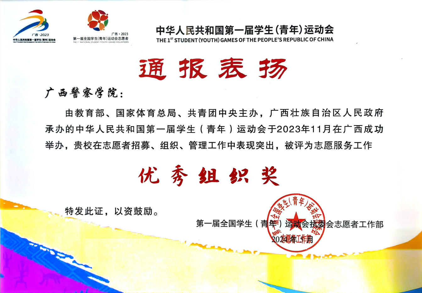 志愿服务彰显担当。2023年,高质量完成东盟博览会、全国第一届学青会、南宁马拉松比赛等重大活动志愿服务任务,荣获第一届学生(青年)运动会志愿服务工作优秀单位和优秀组织奖,159人获评优秀志愿者。