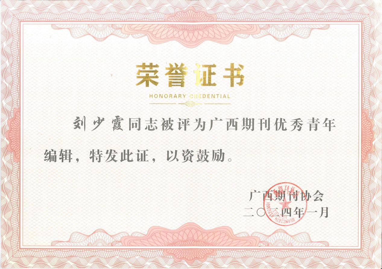 编校团队多人多次获评全国高校社科期刊优秀编辑、广西期刊优秀编辑、广西高校学报优秀主编、优秀编辑,彰显编校队伍过硬的专业素养。