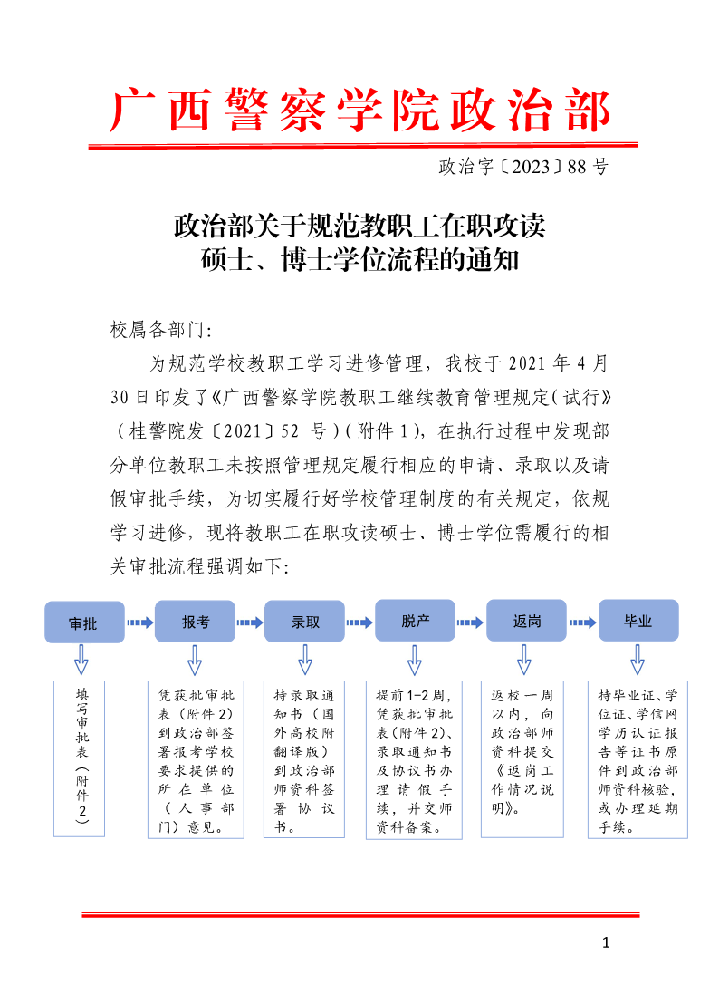 政治部关于规范教职工在职攻读硕士、博士学位流程的通知